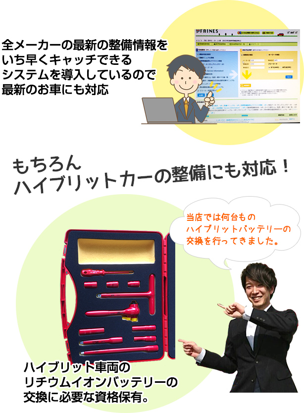 創業53年の整備力、ハイブリットカーにも対応
